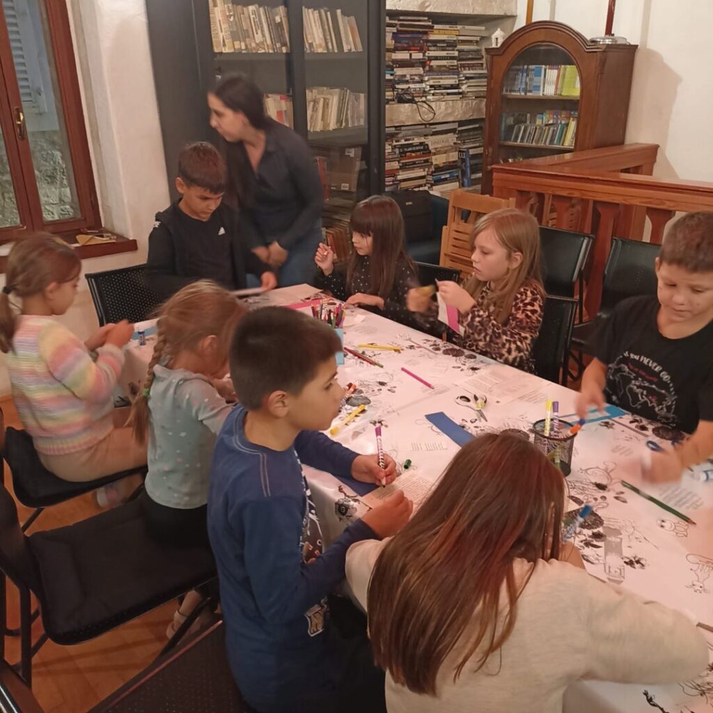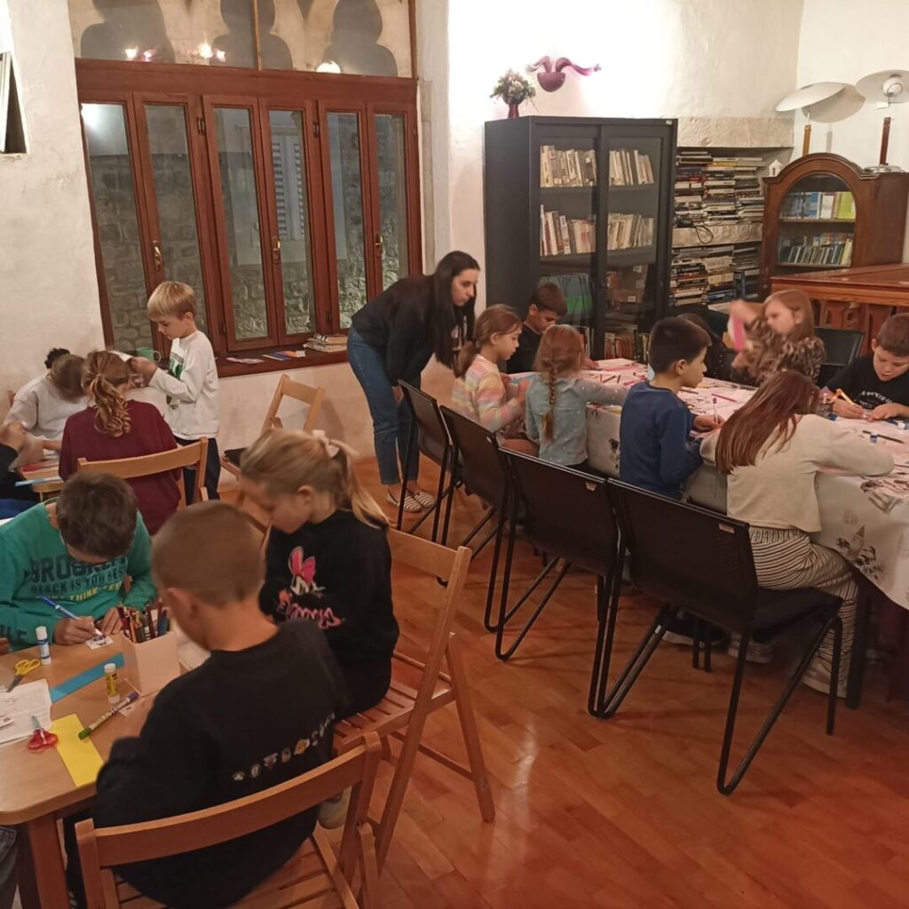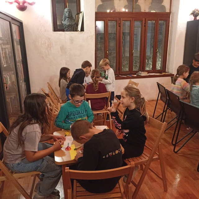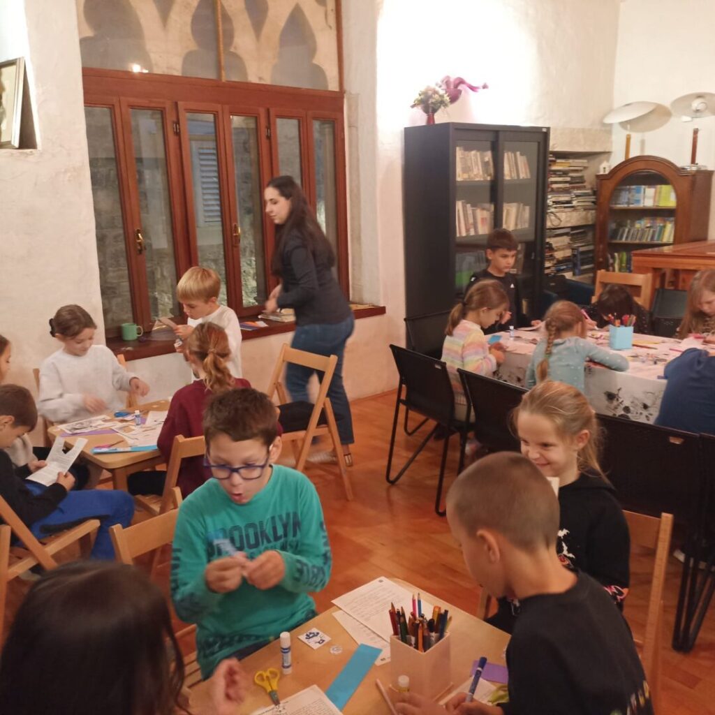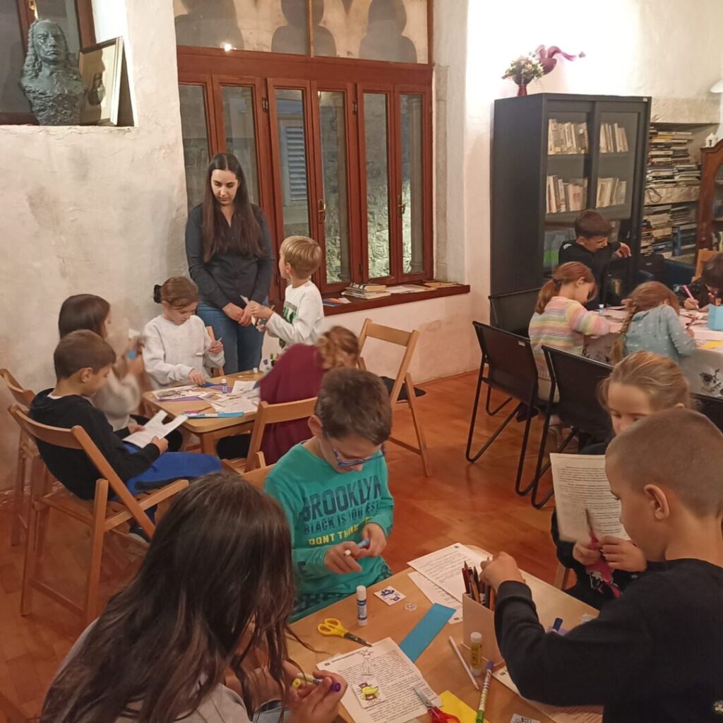 U ponedjeljak, 27. listopada 2025. 2.b razred posjetio je Gradsku knjižnicu Trogir i sudjelovao na radionici “Dajmo život starim knjigama” povodom Mjeseca hrvatske knjige.
