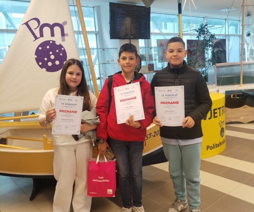 Našu školu predstavljali su učenici 5. razreda: Emanuela Pecollaj, Jadran Rožić i Roko Turković. Oni su ujedno bili najmlađi natjecatelji ovogodišnjeg Robokupa. Odličnim snalaženjem u svim zadacima pokazali su samostalnost, upornost i želju za učenjem.