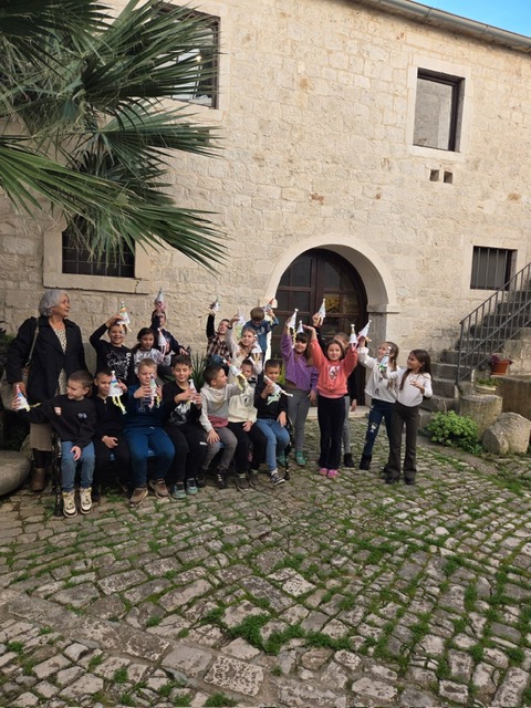 Učenici 2.a su 9.12.2025 sudjelovali u likovnoj radionici (Edukativna zona) u Muzeju grada Trogira pod nazivom „Dalmatinski gnom“. Prethodila je priča muzejske pedagoginje Goranke Tomaš o običajima u Dalmaciji, o seriji Malo misto i liku Roka Prča. Uistinu lijep spoj nama modernog (skandinavskog tradicionalnog patuljka) i tradicionalnog.